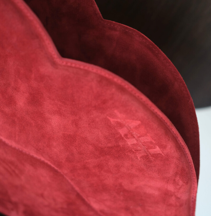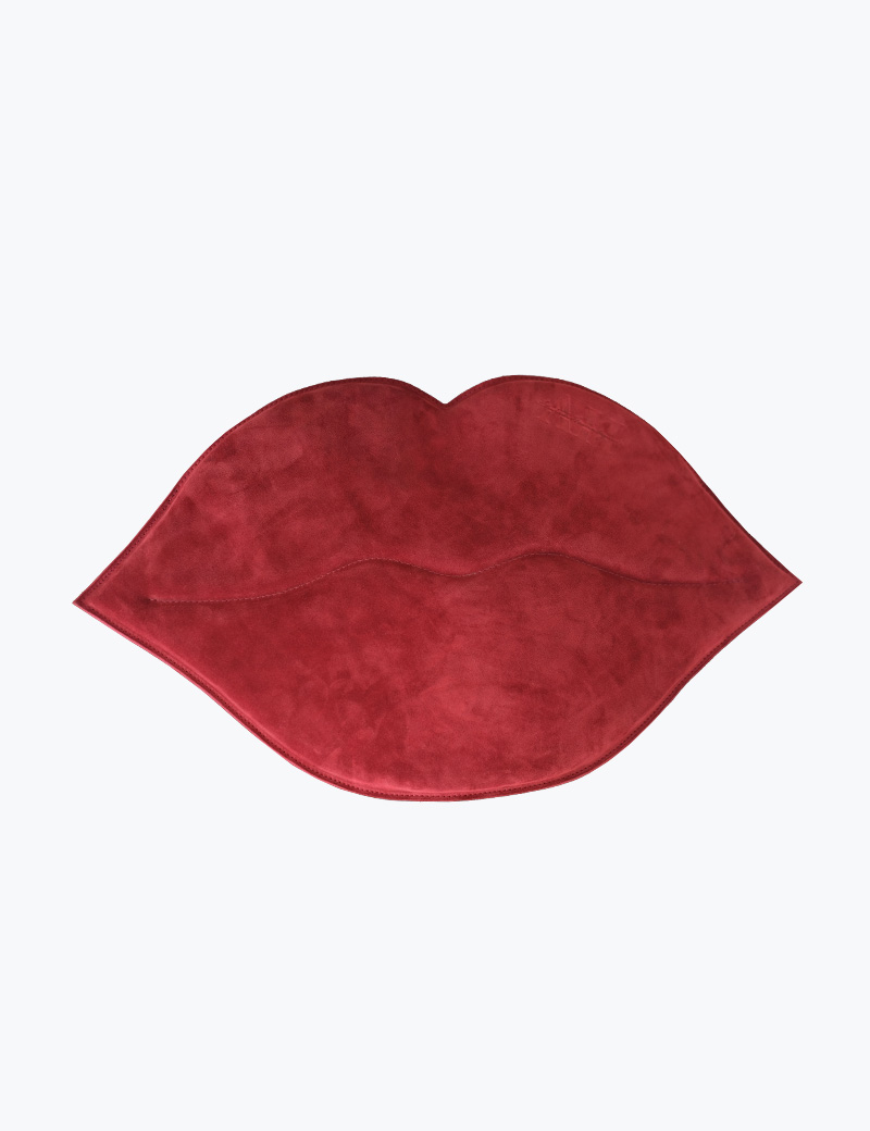Brushed leather handbag in the lip shape