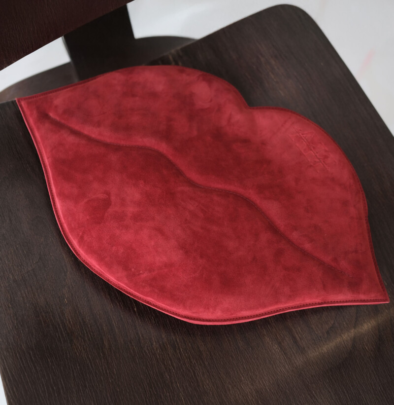 This unique brushed leather handbag in the shape of lips is the perfect choise for those who love sophisticated design. With its inovative shape, the bag adds a touch of glamour and fun to any outfit.